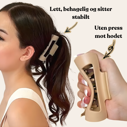 Den fleksible utformingen gjør at hårklypen holder håret skånsomt på plass, uten å klemme eller lage harde trykkpunkter slik tradisjonelle klyper ofte gjør.